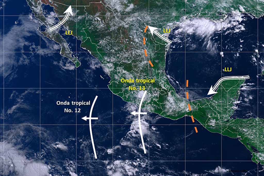 En el reporte más reciente del organismo dependiente de la Comisión Nacional del Agua (Conagua), también indicó que el aire inestable superior afectará el norte y centro del territorio nacional y una nueva onda tropical (la número 14) cruzará rápidamente la Península de Yucatán.