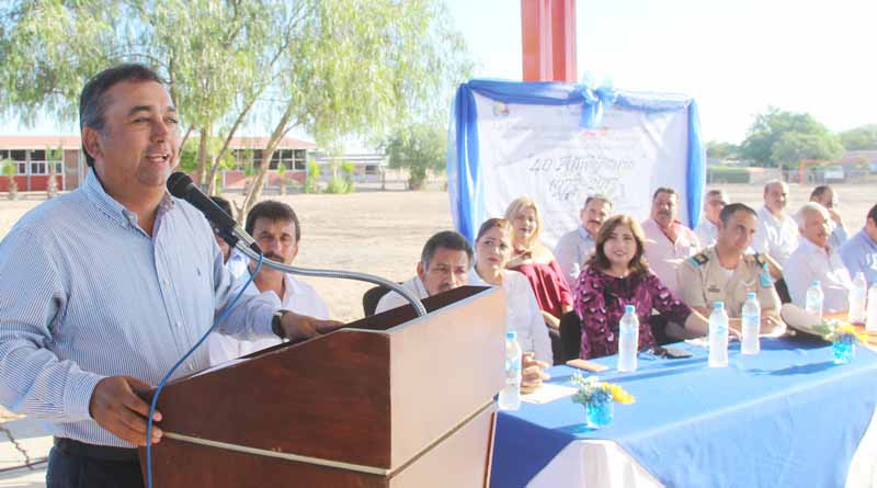 Al acto celebrado en instalaciones de la secundaria General Agustín Olachea, se contó con la presencia del Capitán Segundo de Caballería José Guadalupe Vizcarra; del representante de la SEP en Comondú Roberto Chacón Cárdenas; del director de la Institución anfitriona Profesor Marco Antonio Meza; la síndico Laura Chacón Cárdenas; el regidor Plácido López e invitados especiales, el alcalde Francisco Pelayo les dijo que hoy se estaban celebrando los primeros 40 años de fundación de la secundaria, pero también celebremos el inicio de la recuperación de nuestro Valle, que hoy está en todos ustedes lograrlo, apuntó.
