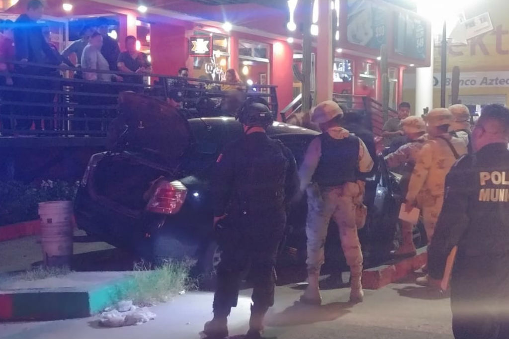 Ahí, un automóvil se impactó contra la banqueta de un establecimiento de comida japonesa.