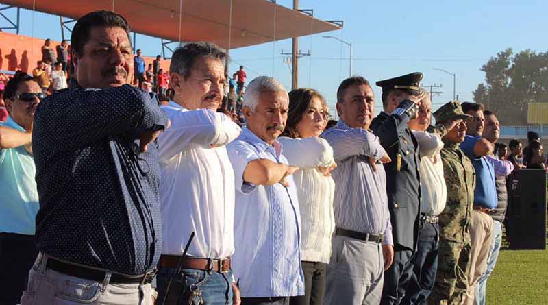 Acompañado del 2do. Comandante Ramón Gerardo Lara Calvillo, representante del comandante del 17 Regimiento de Caballería Motorizada; del teniente Fredy Meléndez, representante de la zona naval; el diputado Edson Gallo Zavala; del representante de la SEP Roberto Chacón Cárdenas, así como de síndico y regidores, el alcalde de Comondú Francisco Pelayo presidió esta importante ceremonia, en la que el orador Placido López Ramírez dijo que como resultado de la incomparable visión y a esa pasión que caracteriza a la autoridad Municipal de Comondú, hoy vemos un Municipio con un rostro diferente, con más y mejor iluminación, mas obras de drenaje y agua potable, más pavimento, más y mejor infraestructura deportiva, más apoyo para niños y jóvenes estudiosos y contacto permanente con la ciudadanía.