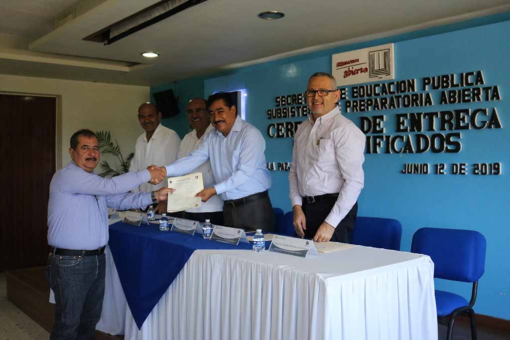 Baja California Sur se ha enfrentado a retos derivados de la reforma educativa, pero también ha logrado posicionarse como referente nacional en el cumplimiento de metas, señaló Héctor Jiménez Márquez, secretario de Educación Pública en la entidad, al presidir la entrega oficial de 54 certificados de terminación de estudios en la modalidad de Preparatoria Abierta.