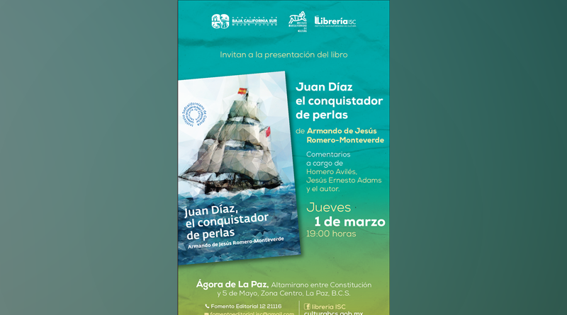 Con el objetivo de fomentar el gusto por la lectura en la población, el Gobierno del Estado a través del Instituto Sudcaliforniano de Cultura (ISC) y la Coordinación de Fomento Editorial, llevaran a cabo la presentación editorial “Juan Díaz: El conquistador de perlas”, del escritor Armando de Jesús Romero Monteverde.