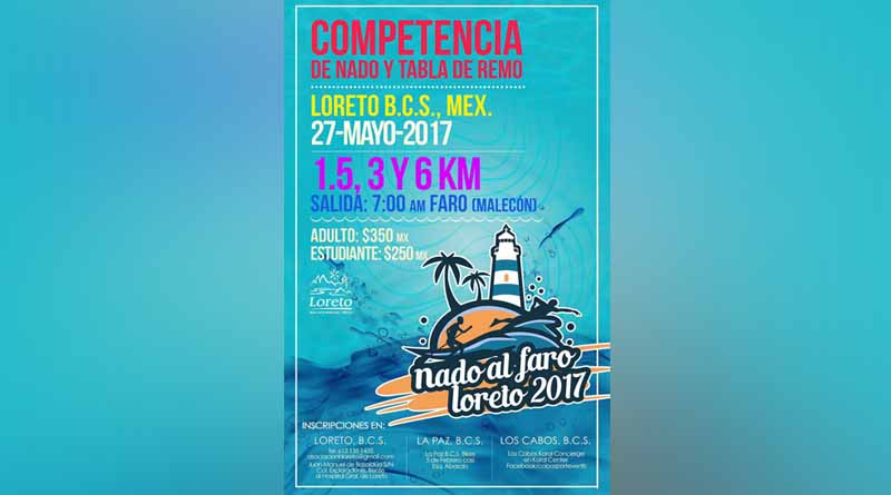 El Pueblo Mágico de Loreto será la sede de la primera competencia de nado y tabla de remo, la cual lleva por nombre “Nado al faro”, y se llevará a cabo el 27 de mayo, un evento que fortalecerá el posicionamiento de la localidad en un plano nacional e internacional, mencionó el secretario de Turismo, Luis Genaro Ruíz Hernández.