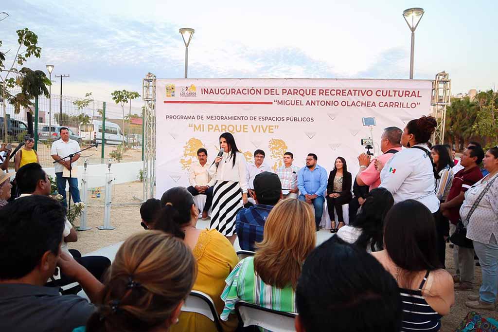 La alcaldesa de Los Cabos, aprovechó su participación para reiterar a la comunidad el compromiso que tiene la actual Administración con la mejora de infraestructura; de lo que debe ser un punto de encuentro y sana convivencia para las familias cabeñas, asimismo, invitó a la sociedad a mantener en buen estado las mejoras que se realizaron, y a cuidar los árboles con los que se reforestaron las áreas verdes.