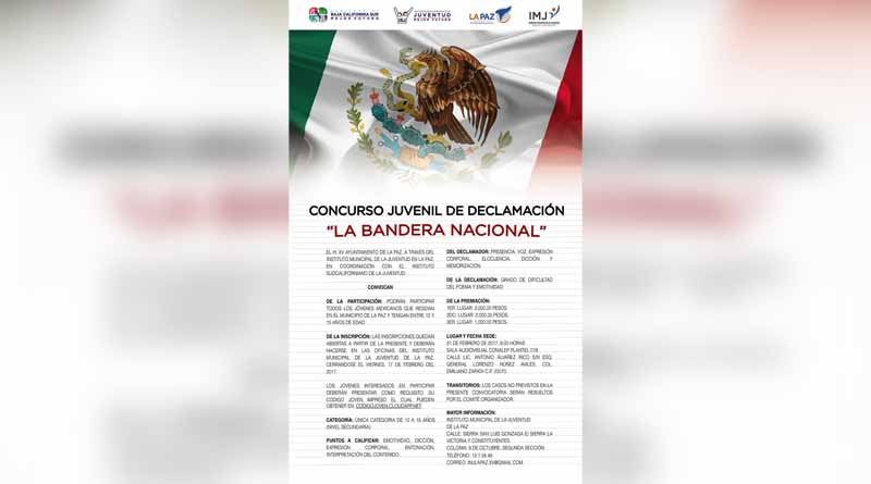 Como parte de las actividades para inculcar los valores cívicos, el Ayuntamiento de Comondú, a través del Instituto Municipal de la Juventud invita a jóvenes y ciudadanía en general al concurso de Escoltas y Declamación que se llevara a cabo el próximo lunes en el parque del Ágora de Ciudad Constitución.