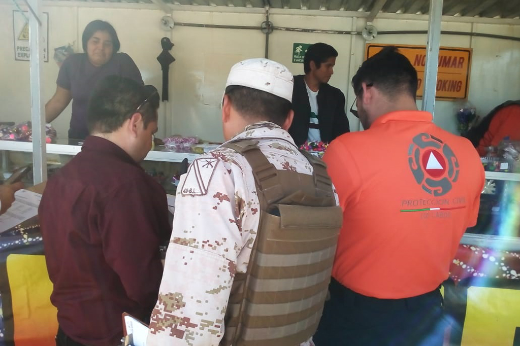 Los Cabos BCS. –El H. XIII Ayuntamiento de Los Cabos, en conjunto con dependencias federales, realizaron diversos operativos de vigilancia de venta ilegal de pirotecnia, con el objetivo de revisar cuáles pueden ser los establecimientos que expenden productos autorizados y cuáles no, además se verificó que cuenten con las medidas de seguridad pertinentes, así informó el director general de Seguridad Pública Municipal, el capitán de navío Juan José Zamorano Martínez.