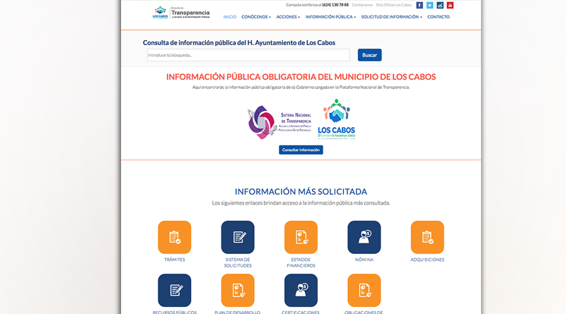 http://transparencialoscabos.gob.mx/, en la cual vienen de manera específica, las fracciones del artículo 75 de la Ley de Transparencia y Acceso a la Información Pública.