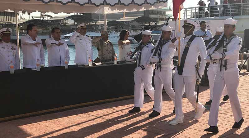 En este acto celebrado en las instalaciones del muelle espigón de Administración Portuaria Integral (API), y ante la presencia del comandante del Sector Naval de Cabo San Lucas, contralmirante Miguel Ángel Cobos Soto,así como de autoridades militares y funcionarios de los tres niveles, el secretario destacó que la SEMAR es símbolo de honor, lealtad y patriotismo.
