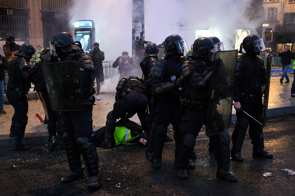 La prensa local reportó que en París, un grupo de hombres vestidos de negro y con pasamontañas instalaron barricadas y lanzaron ataques contra la policía, la cual respondió lanzando chorros de agua y gas lacrimógeno para dispersar a los manifestantes, y arrestaron a unas 22 personas.