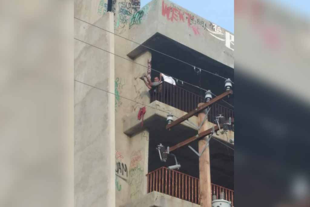 Fue al filo de las 7:38 de la mañana de este miércoles 25 de julio, cuando los oficiales de la Policía Turística a bordo de las unidades SSPE-8145 y SSP-0004 fueron alertados por el C-4 de la presencia de una persona de aspecto femenino vistiendo short gris y playera negra con rayas blancas, la cual se encontraba en la parte exterior de un balcón del quinto piso, en un edificio abandonado ubicado en las calles de Manuel Torre Iglesias entre Francisco I. Madero y Belisario Domínguez, en la colonia El Esterito, trasladándose de inmediato al lugar.