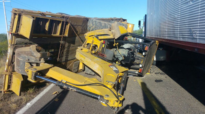 De acuerdo a los reportes, el remolque que transportaba la retro excavadora se ladeó y se desprendió, quedando sobre el carril contrario; lo cual provocó el choque con la caja del tráiler que circulaba por el otro carril.