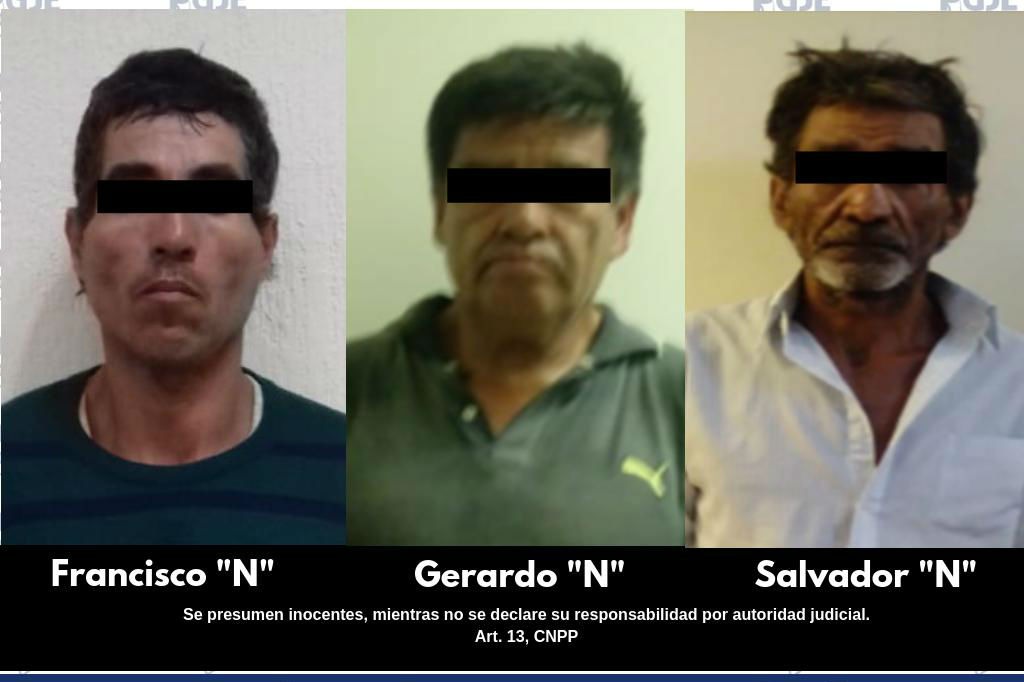 Agentes Estatales de Investigación Criminal (AEIC) dejaron a disposición del agente del Ministerio Público de la Subprocuraduría de Atención a Delitos de Alto Impacto (SADAI) a Francisco, Salvador y Gerardo “N”, con 652 dosis de cristal, el lunes 04 del presente.