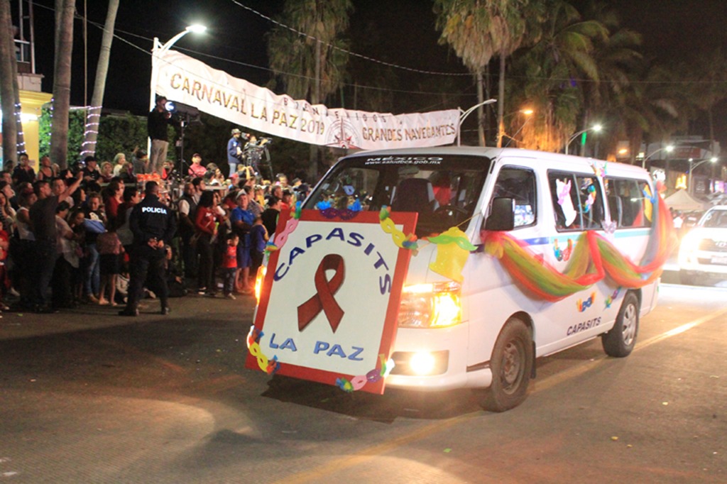 Como parte de las acciones preventivas que lleva a cabo para proteger el bienestar de los sudcalifornianos, la Secretaría de Salud de la entidad, a través de su programa de VIH-SIDA e Infecciones de Transmisión Sexual,realizó la distribución de preservativos durante el desfile de comparsas y carros alegóricos desarrollado en el marco del Carnaval La Paz 2019.