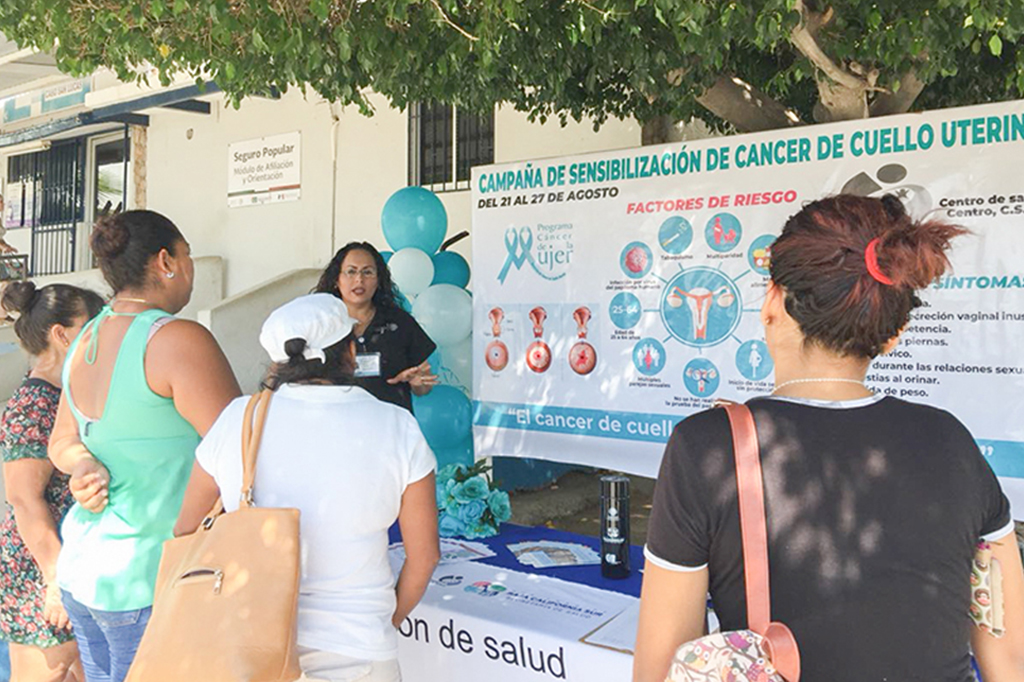 Mediante la instalación de módulos de sensibilización sobre cáncer cervicouterino en centros de salud de Los Cabos, la Secretaría estatal difunde entre las pacientes la importancia de que se practiquen periódicamente el Papanicolaou, que es una prueba eficiente para detectar anormalidades o alteraciones que de no ser tratadas pueden evolucionar en una lesión maligna.