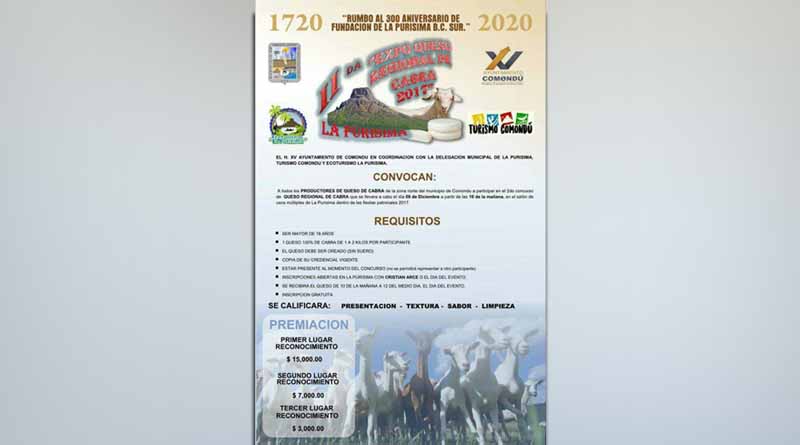 Con una participación de 42 expositores, se llevó a cabo la Segunda“Expo Queso Regional de Cabra”, en el marco de las Fiestas Patronales La Purísima 2017 rumbo a los 300 años de su fundación, evento organizado por el Ayuntamiento de Comondú en coordinación con la Delegación Municipal y el grupo Ecoturísticos La Purísima, dio a conocer el director de Turismo, Lic. Miguel Ulises Cota Higuera.