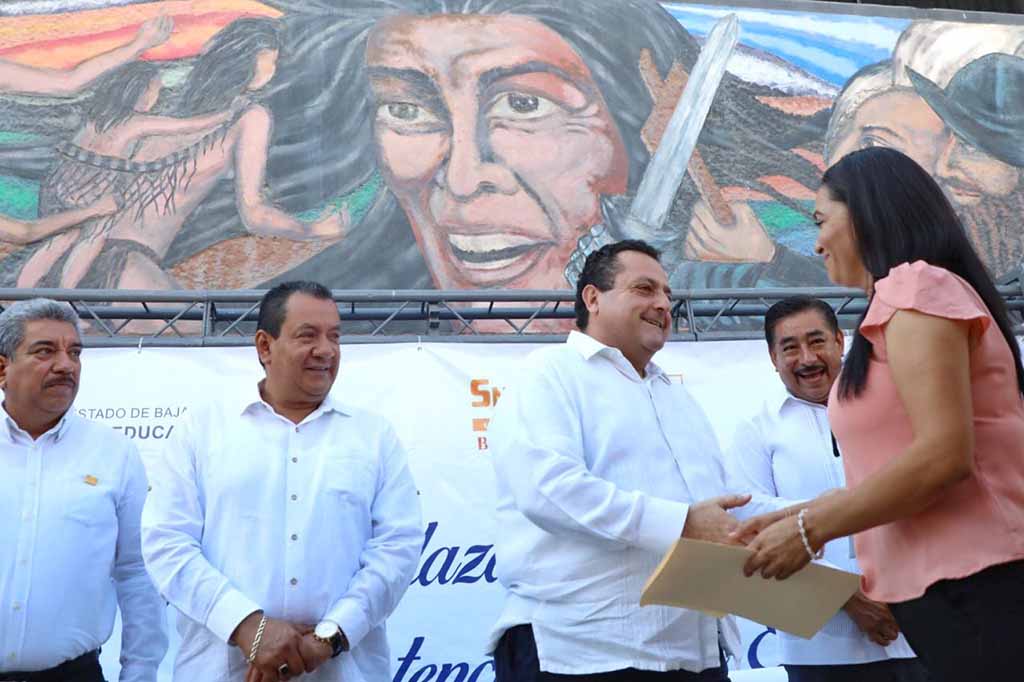 “Por la dedicación de los trabajadores administrativos, la preparación de los maestros y con espacios educativos de calidad, el sistema educativo sudcaliforniano continúa siendo referente a nivel nacional también en crecimiento y excelencia; por eso hoy vengo aquí, no hablar bien de la administración estatal, sino hablar bien de ustedes, trabajadores, reiterarles mi aprecio y admiración al atestiguar este acto de justicia”; puntualizó el mandatario estatal.