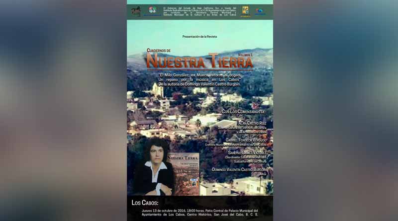 El Gobierno del Estado a través del Instituto Sudcaliforniano de Cultura y el H. XII Ayuntamiento de Los Cabos, invitan a la comunidad en general a la presentación de la Revista Cuadernos de Nuestra Tierra volumen 1 “El Milo González, ex Mueca, retorno al origen, un repaso por la música en Los Cabos” de la autoría de Domingo Valentín Castro Burgoin.