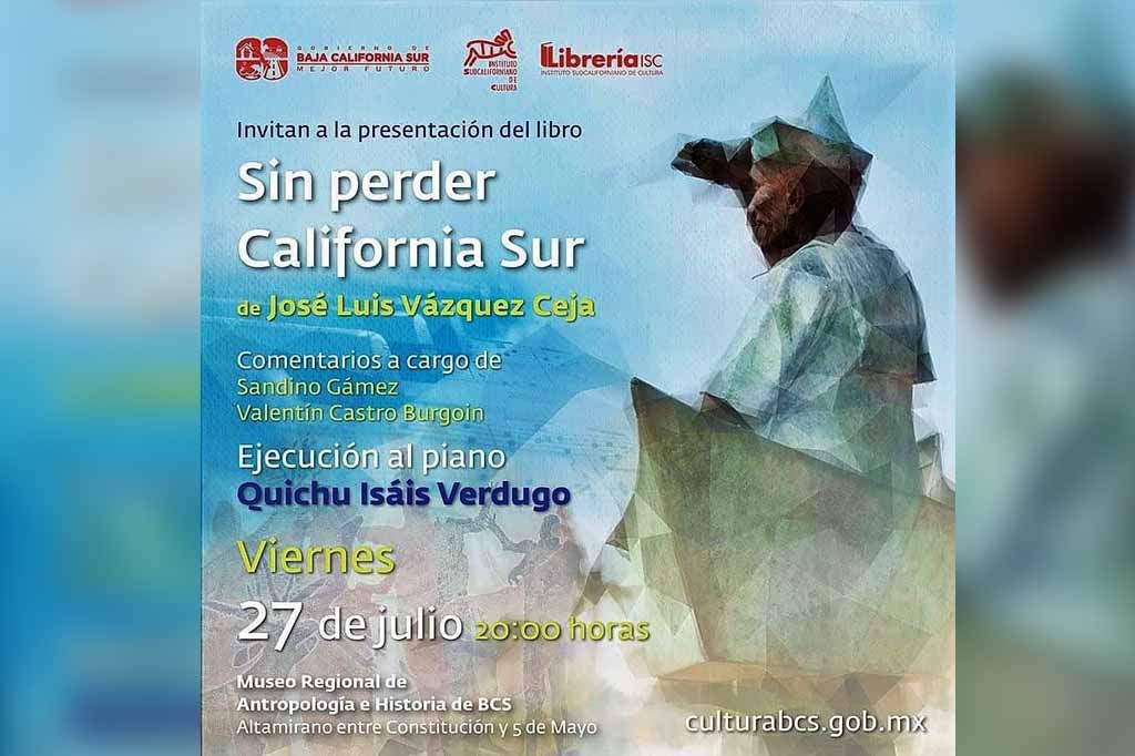 Con el objetivo de brindar diversas propuestas para el desarrollo cultural de la población, el Gobierno del Estado y el Instituto Sudcaliforniano de Cultura (ISC), a través la Librería ISC, llevarán a cabo la presentación editorial “Sin Perder California Sur”, de José Luis Vázquez Ceja, dio a conocer el director del ISC Christopher Amador Cervantes.