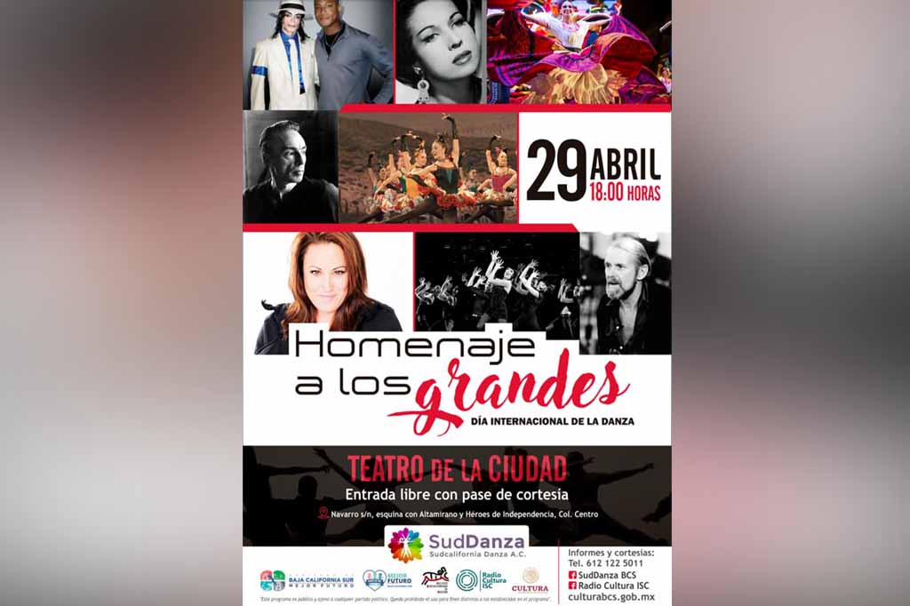 El director del Instituto Sudcaliforniano de Cultura (ISC) Christopher Amador Cervantes, hizo una atenta invitación para que el próximolunes 29 de abril asistan al evento denominado “Homenaje a los Grandes”, con la finalidad de festejar el talento de diversos exponentes de la danzainternacional.