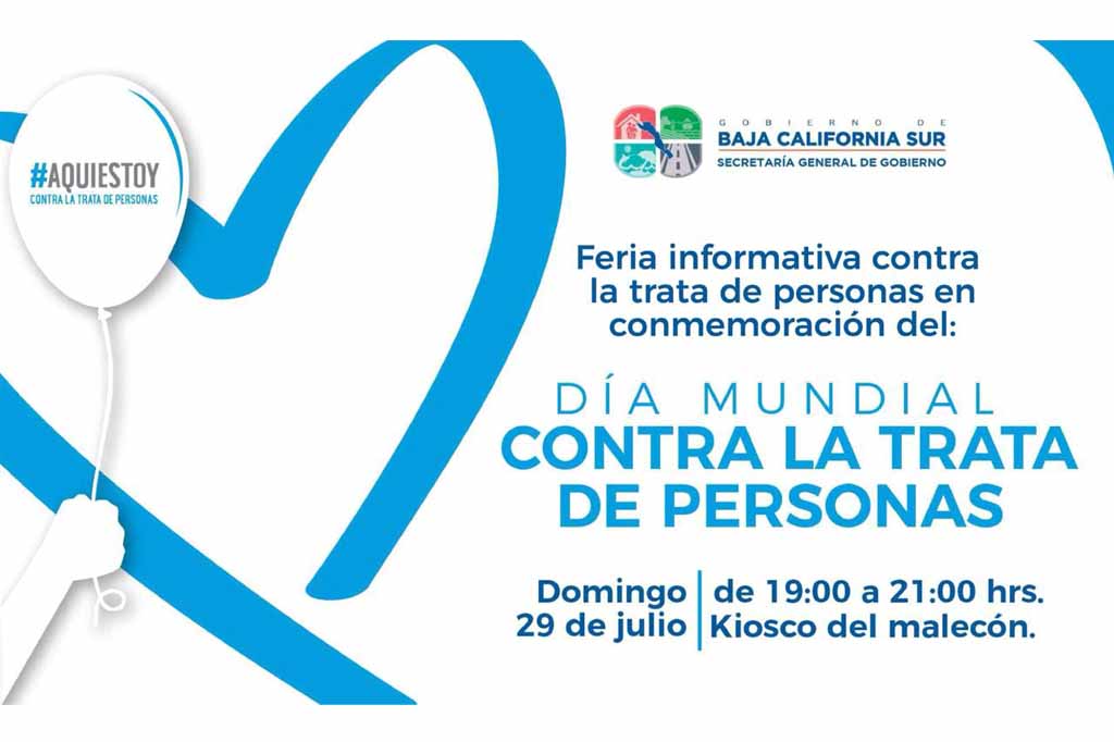 El gobierno del Estado a través de la Secretaría General de Gobierno, y en coordinación con autoridades de los tres niveles de gobierno e instituciones públicas, invitan a la población a la Feria informativa en conmoración del Día Mundial contra la trata de personas, la cual se desarrollará el próximo domingo 29 de julio a partir de las siete de la tarde en el kiosko del malecón de la capital del estado.