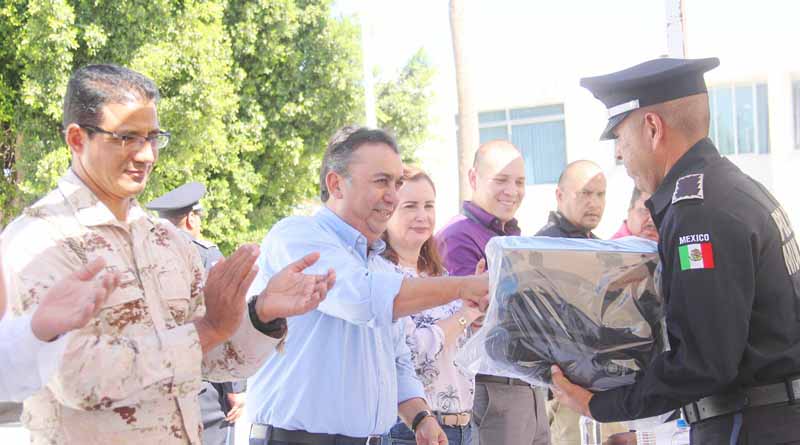 A portar con dignidad el uniforme, para no defraudar la confianza de los ciudadanos, exhorto el alcalde Francisco Pelayo a los elementos de Seguridad Pública, durante entrega de equipos y uniformes, donde ratifico el compromiso de seguir trabajando juntos, pueblo y gobierno, al sostener que no solo es responsabilidad de las corporaciones policíacas que haya un Municipio con ley, también es responsabilidad de la sociedad.