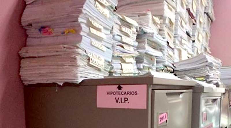 Cabo San Lucas.-Gran indignación ha causado entre abogados de esta ciudad un letrero descubierto en el Juzgado Primero Civil y Familiar de Cabo San Lucas donde se denotas que se estaría dando trato preferencial a los expedientes de juicios hipotecarios, a tal grado de colocar un letrero con la leyenda “Hipotecarios VIP”.