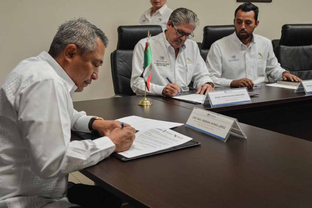 El Secretario de Seguridad Pública del Estado (SSPE) Germán Wong López y el director general del Colegio de Estudios Científicos y Tecnológicos (CECyTE), Ángel René Holmos Montaño, firmaron un convenio de colaboración, cuyo objetivo es forjar una alianza que ayude a prevenir y erradicar conductas negativas en estos centros educativos.