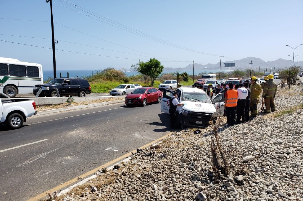 Al parecer, el vehículo circulaba sobre la carretera federal en el sentido que va a Cabo San Lucas, pero debido al accidente quedó a contra flujo, dejando daños de consideración en su carrocería.