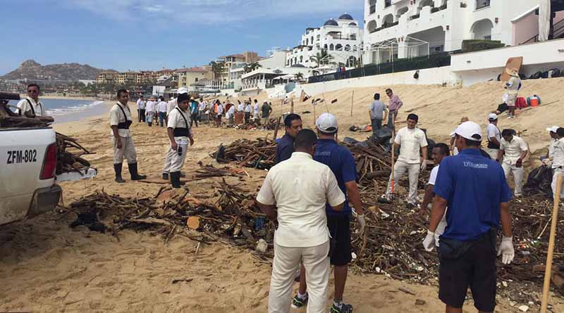 130 colaboradores de la Zona Federal Marítimo Terrestre en Los Cabos, con el apoyo de Semarnat, concesionarios y colonos del Médano, realizan trabajos de limpieza y rehabilitación de caminos en una de las playas más visitadas de Cabo San Lucas.