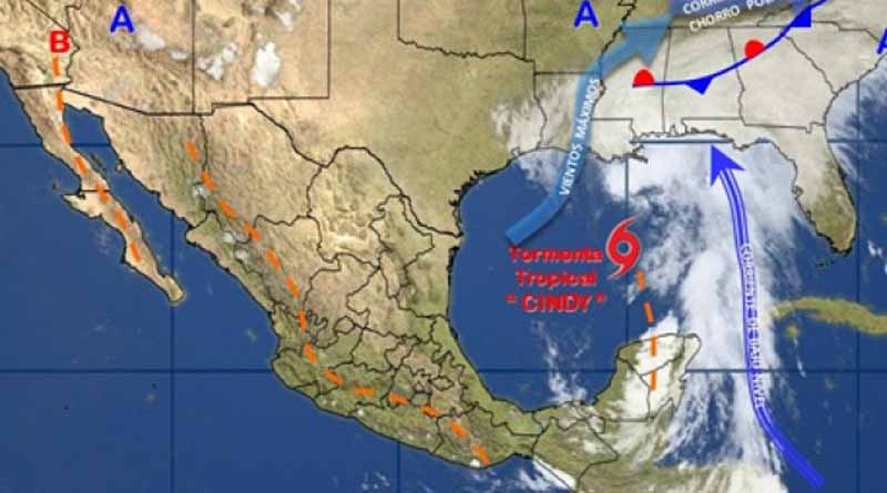 Cindy se desplaza hacia el noroeste a 13 kilómetros por hora y se espera que haga un giro hacia el norte-noroeste y se mueva tierra adentro sobre el sureste de Texas o el suroeste de Louisiana el jueves, anotó el CNH.