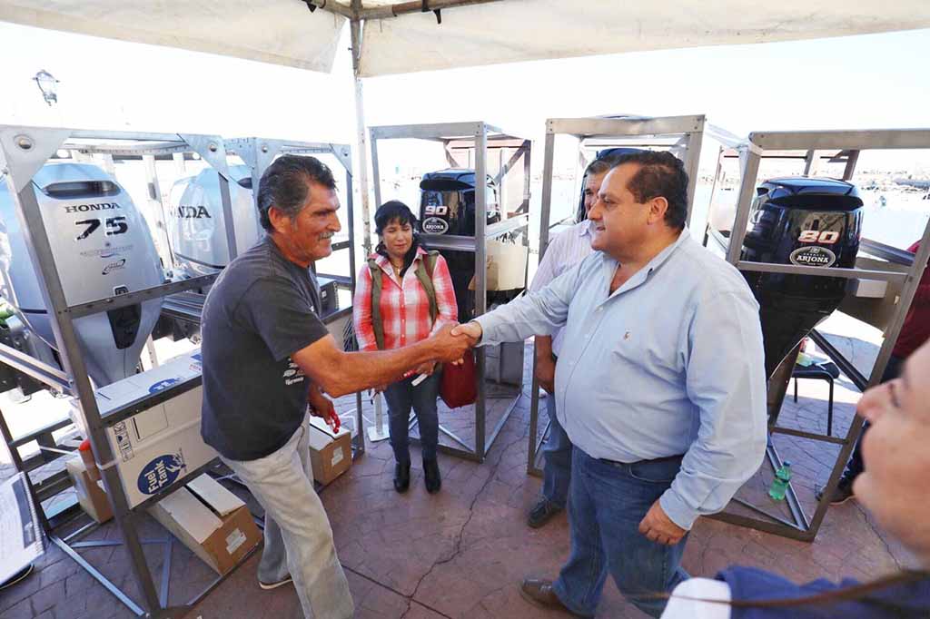 Acompañado de la alcaldesa de Loreto, Arely Arce Peralta, el gobernador Mendoza Davis entregó 9 motores y convocó a los productores de este municipio a continuar sumando esfuerzo para optimizar el esfuerzo pesquero y valorar la posibilidad e incursionar en otras pesquerías como el ostión, en donde ya somos el quinto productornacional.