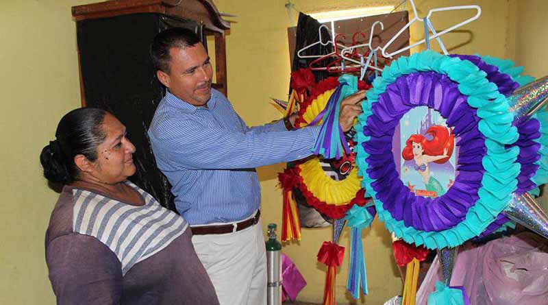 En el marco de una visita de supervisión a beneficiarios de este programa social, el secretario de Desarrollo Social en la entidad, pudo conocer la historia de la señora Martha Laura Arroyo, quien tiene como principal fuente de ingresos la elaboración de piñatas, con el que da sustento a su hijo con discapacidad.