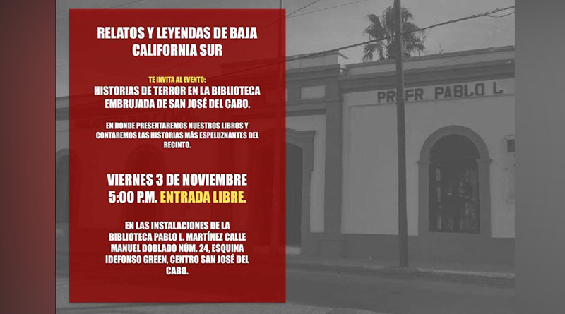 A fin de perpetuar las tradiciones de nuestra cultura en niños, jóvenes y público en general a través de la lectura; el Gobierno de Los Cabos a través de la Coordinación de Bibliotecas, invitan al evento Historias de Terror en la Biblioteca Embrujada de San José del Cabo, este viernes 3 de noviembre a las 5:00 pm, en las instalaciones de la Biblioteca Pública Pablo L. Martínez, ubicada en Manuel Doblado 24 esquina Idelfonso Green, colonia Centro.