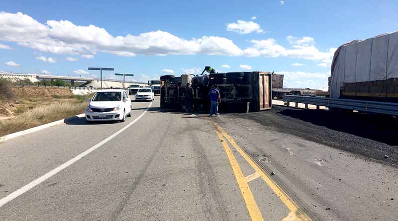 Vuelca camión cargado de asfalto en carretera Todos Santos-La Paz