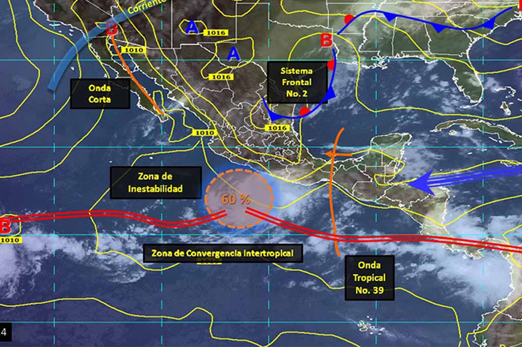 Indicó que su nubosidad favorece el potencial de tormentas puntuales intensas en Guerrero y Oaxaca.