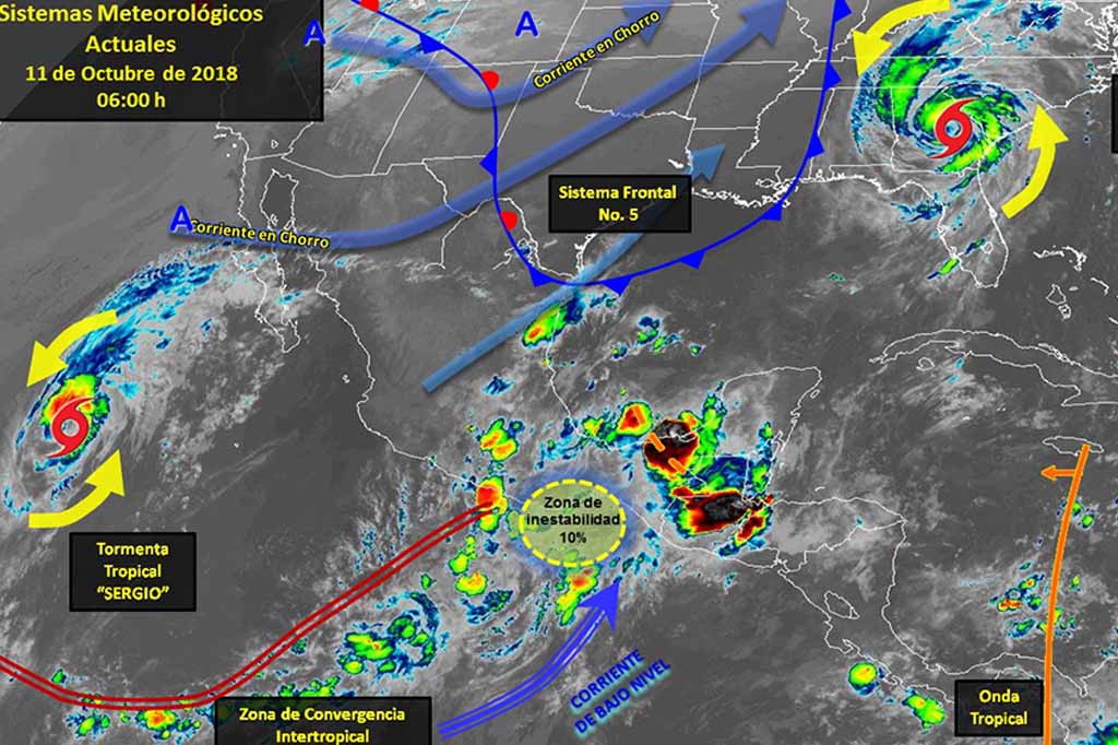 México, 11 Oct (Notimex).- El Servicio Meteorológico Nacional (SMN) reportó que una zona de inestabilidad con 10 por ciento de potencial ciclónico en 48 horas, se localiza esta madrugada frente a las costas de Oaxaca y favorecerá el potencial de lluvias en los estados del sureste y oriente del país.